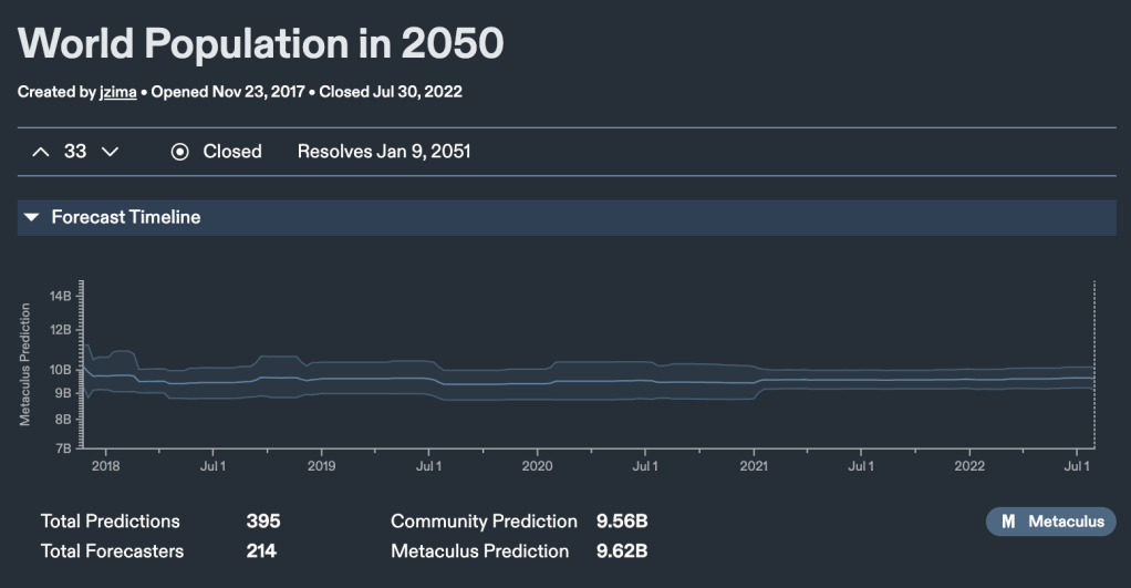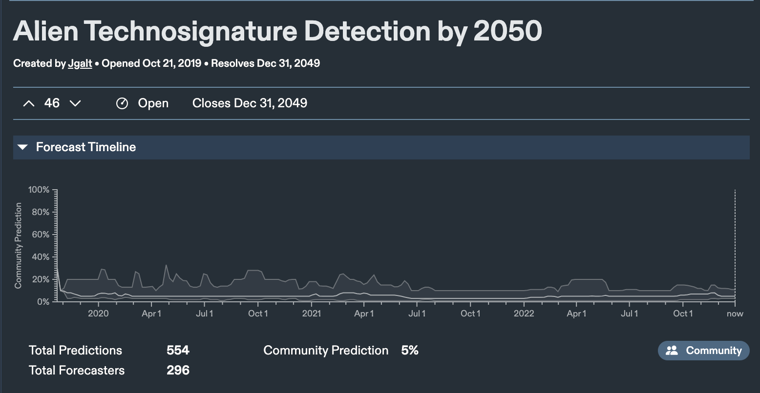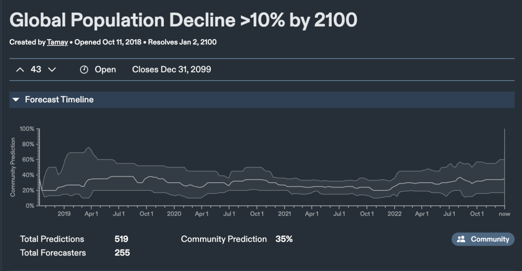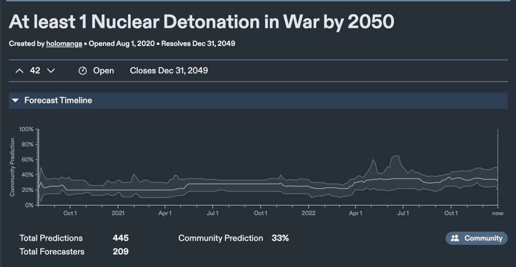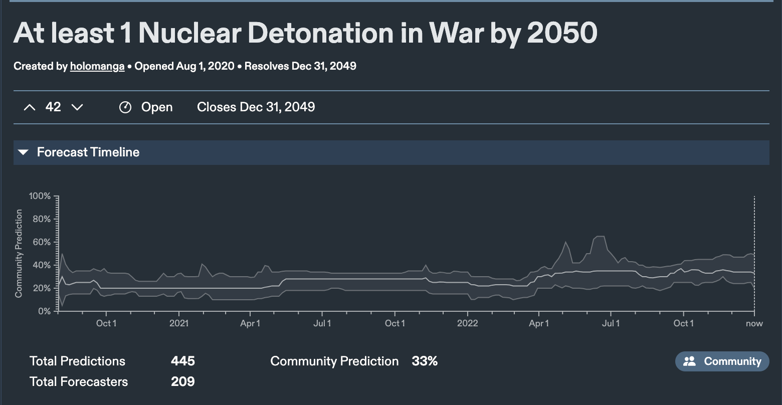 Current Metaculus community predicted snap shot as of Dec. 31, 2022: